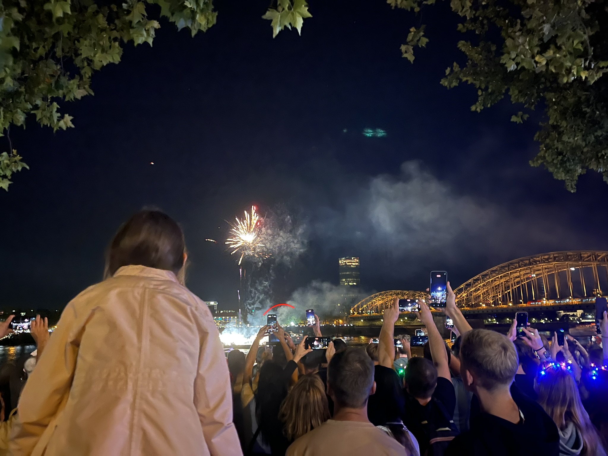 지난 8월 30일 저녁엔 Kölner Lichter 2025, 쾰른인의 빛으로 해석되려나! 여튼 유람선이 작은 폭죽을 터뜨리며 라인강을 따라 지나가고 그 뒤엔 본격적으로 불꽃놀이가 시작되는 밤 축제가 열렸었다. 직전에 열렸던게 2020년이라고 하는 것 같았는데, 코로나로인해 오랫동안 못 열리다가 이번에 5년만에 열린것이라고 한다. 사실 나는 이 날 축제가 열린다는건 몰랐곸ㅋㅋㅋㅋㅋ그냥 첫 월급을 받은 뒤 아야카에게 한 턱 쏘기위해 저녁약속을 잡은것이었는데, 마침 축제가 열린다하기에 아야카와 같이 간 것이다 히히! 그리고 이 축제소식은 집주인 아저씨에게 들었는데, "내 직장동료가 이 축제에서 맥주 부스를 열어! 이번에 취미로 시작하는건데, 잘 되면 다음에도 또 할거래" 하시는게 아닌가!! 그래서 아저씨도 이 날 하루는 서버가 되어 열심히 맥주주문을 받고 팔기로 했다고 한다. 무려 시급 3만 2천원이 넘어가는 고급알바라고..!!!