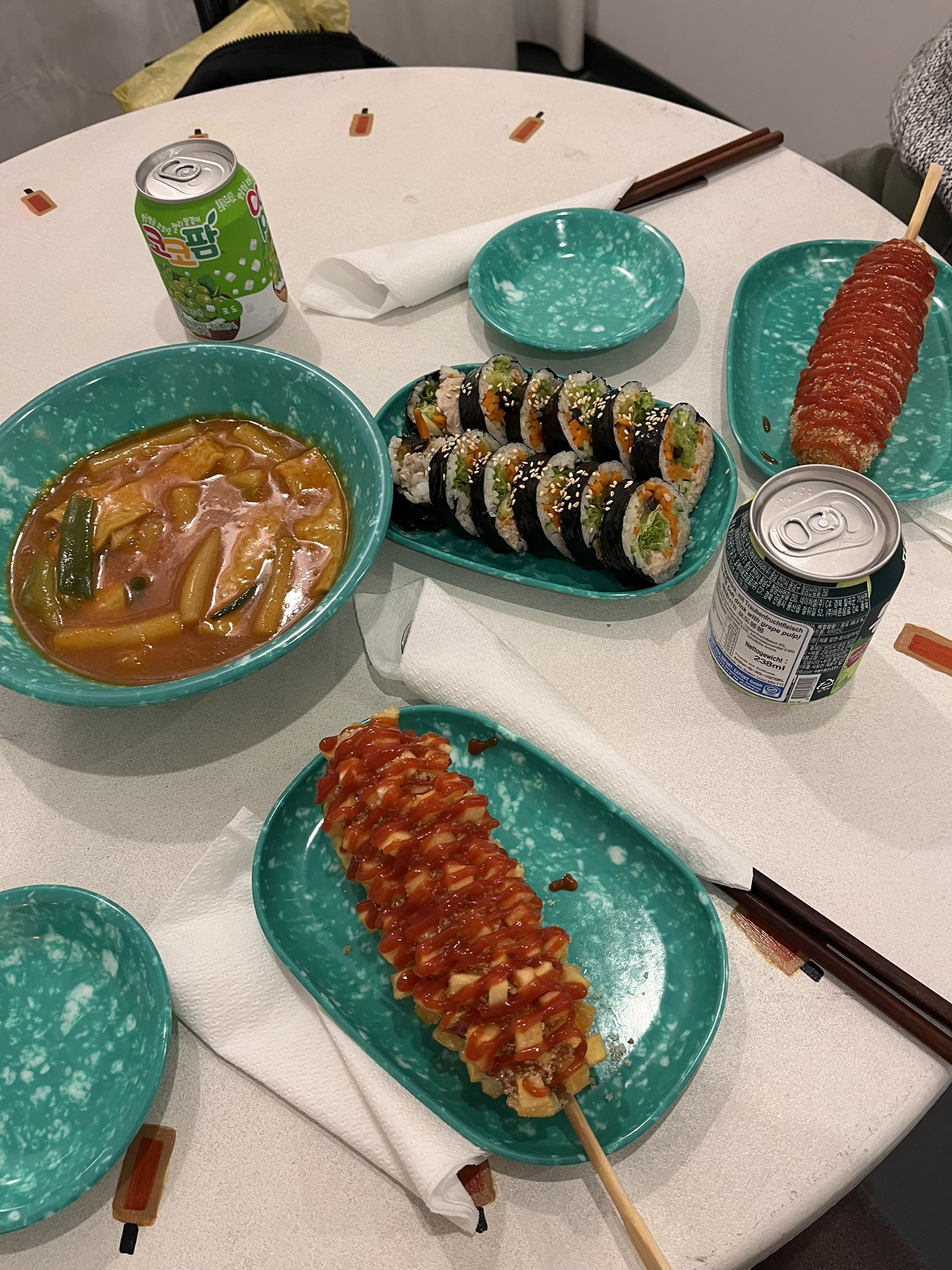 8월 30일 저녁에 아야카를 만나기 전, 점심엔 사실 또 다른 약속이 있었다. 입사하면서 교육받았던 그 일주일동안 친해진 칠레 친구(나탈리아)가 생겼는데, 마침 29일 금요일이 생일인 것이었다. 그래서!! 생일선물겸 간단한 한식을 선물하고싶어서 핫도그와 떡볶이, 김밥을 파는 분식식당으로 향했다!!!! 점심약속 사진부터 렛츠 꼬우!!