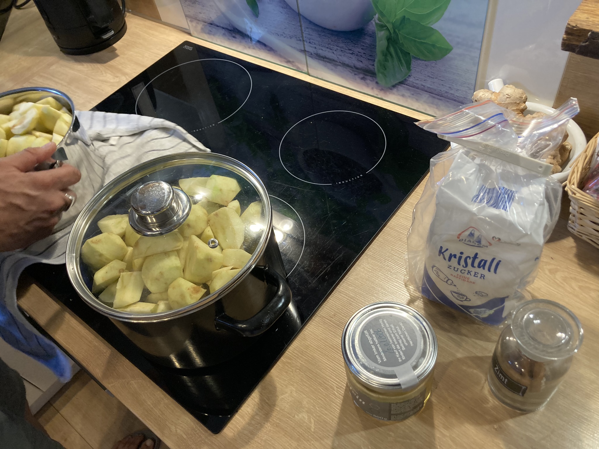 사과를 갈고 병에 옮겨담는동안엔 바쁘고 손이 부족하여 사진을 못 찍었다 헤헷. 여튼 유리병으로 총 아홉개가 나왔다. 짱 많아..!!! 사과무스는 독일식 부침개인 der Tätsch (발음도 귀엽다. 탯-취) 와 함께 먹을 예정이다. 이때도 사진을 찍어야징 히히~~
