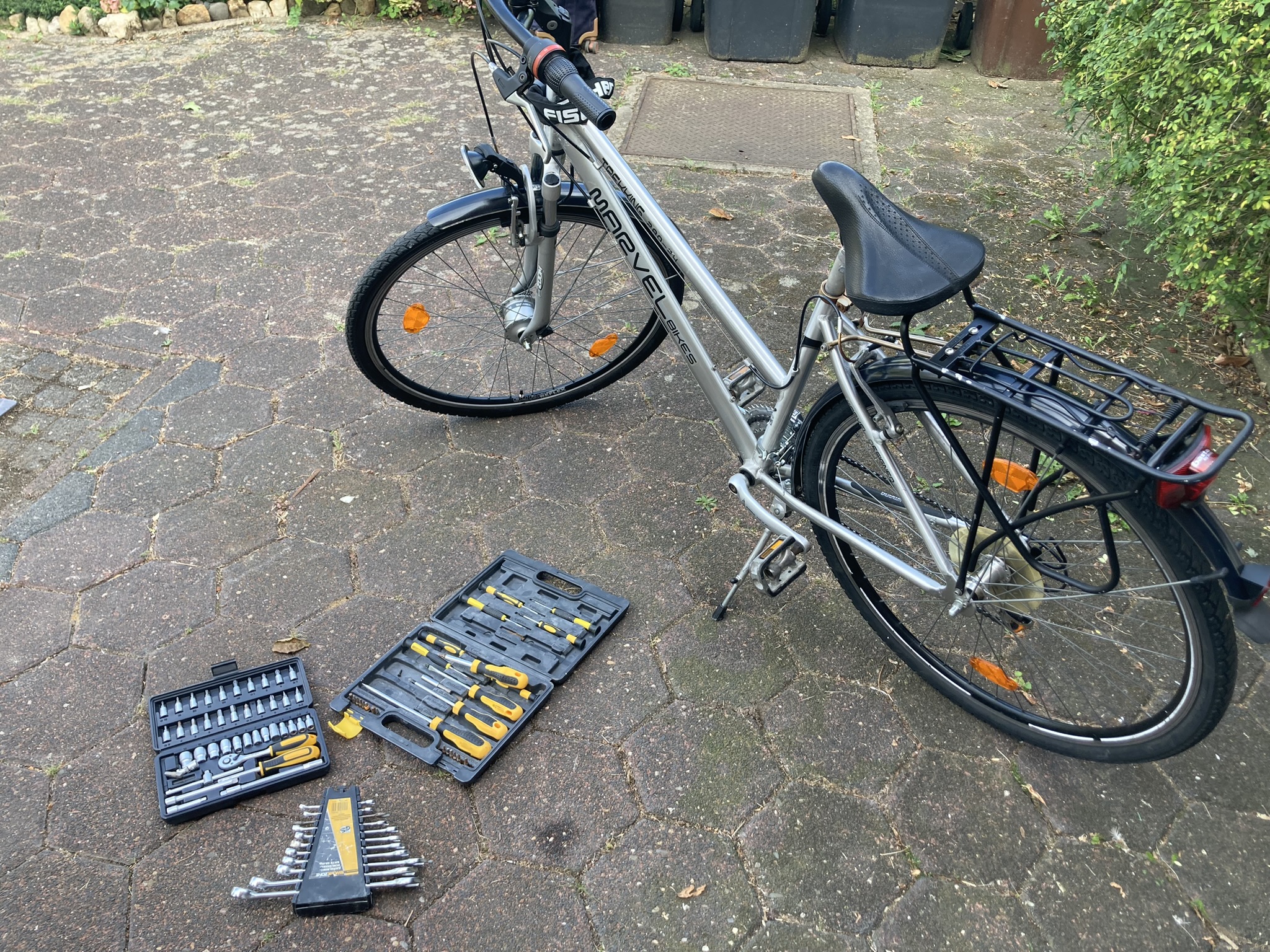 이후 집으로 돌아왔고, 사실 내 자전거엔 몇 가지 물품들을 추가로 설치해야 되는것 뿐만 아니라 안장이 조금 움직이며 뒤로 처지고 있었기에, 나사를 풀어서 위치를 조정한 뒤 힘껏 조여야 될 상황이었다. 그래서 로버트 아저씨에게 말했다. "제가 한번 자전거를 먼저 손 볼게요! 그런데도 안되면 아저씨에게 도움을 요청하겠습니다! 엣헴" 하며 당당하게 말했고 아저씨는 웃으면서 자신의 공구를 빌려주겠다고 하셨다. 드라이버의 어떤 사이즈가 맞을지 모르니 일단 다 가져가보라하여 나는 비장한 얼굴로 공구들을 챙긴 뒤, 차고를 열어 자전거를 꺼내고 그 앞에 섰다.