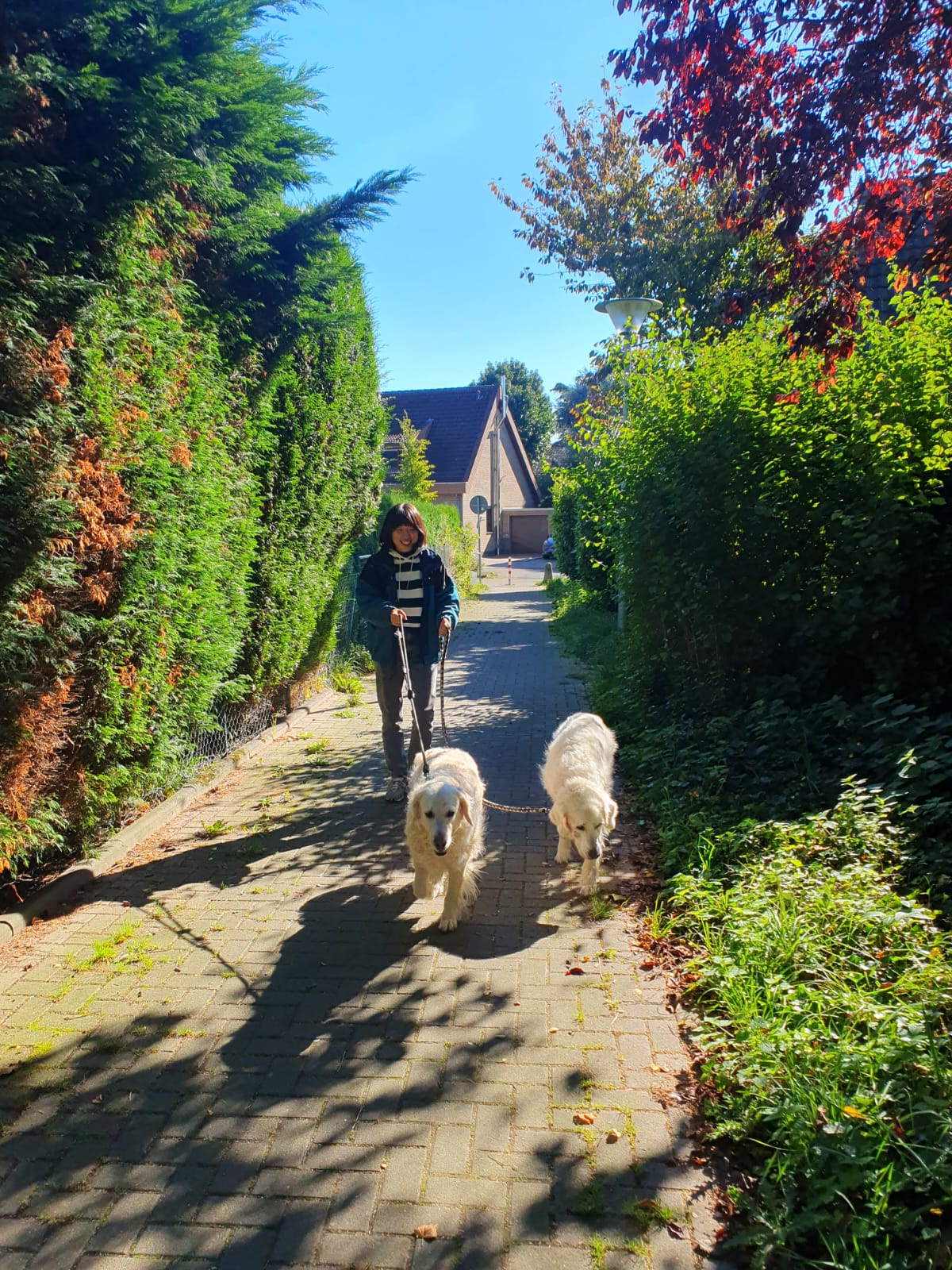 L의 간소한 생일파티가 끝난 뒤 L은 친구와 함께 자신의 방으로 올라갔고, 오후 4시엔 춤 수업을 다녀올 예정이며 이후 저녁에 엄마집에서 본격적인 파티를 열 예정이다. 그리고 나도 또한 새로운일을 앞두고 있었는데, 바로바로!!! 강아지(라고 하기엔 크다!)와 산책가기!!!! 두 마리의 대형견(리트리버!)은 이전에 아저씨의 가족이 다같이 지낼때부터 함께했던 아이들로, 지금은 L의 엄마 집에서 지내고 있다. 그러나 오늘 저녁에 그곳은 복작복작 파티장소가 될 예정이니, 조용한 이 곳으로 하루 외박나온 것. 부엌을 정리한 뒤 아저씨와 함께 리트리버 둘을 이끌고 근처 밭으로 나갔다. 대형견과 산책하는거 내 로망이었는데, 이렇게 이뤄질줄이야!!! 크크크!!!