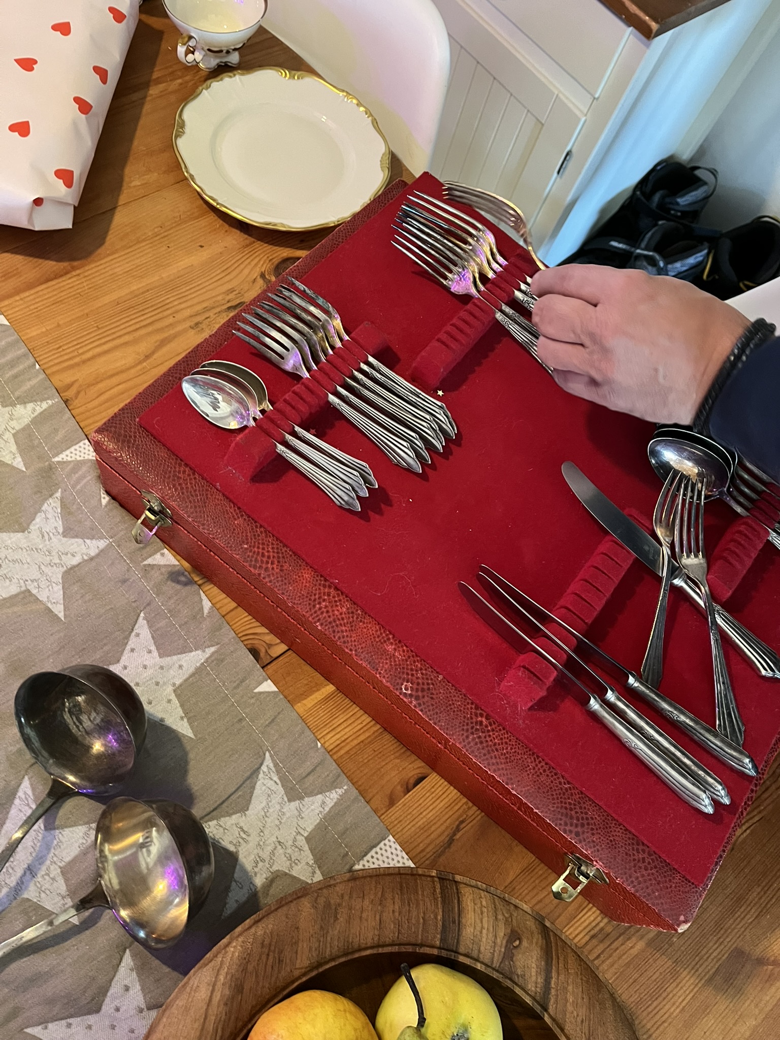 생일파티 전, 아저씨는 마치 집안의 가보와도 같은 식기를 꺼내놓으셨는데 대략 1800년대쯤부터 사용해왔던것이라고 하신다. 아저씨의 엄마의 할머니였나.. 할머니의 할머니였나.. 조금 헷갈렸는데, 어쨌든 이 정도면 개인 가정집에선 정말 오래된 물건이라 생각하니 왠지 행동이 조심스러워지는 순간이었다. 동시에 뭔가 벅차오르는 기분을 표현하고싶어, 고심끝에 생각해낸게 "나는 지금 한 집안의 역사를 보고있네!". ㅋㅋㅋㅋㅋㅋㅋㅋㅋ가끔 내가 신나서 그 순간의 기분이나 사물의 모습을 표현할때면 아저씨는 고개를 갸우뚱하며 "그건 시적인 표현이야"하며 웃으시곤 한다. 독일어로 내가 좀 낯간지럽게 말하는 느낌인걸까 싶었으나, 떠오르는 표현이 딱 그런걸 어떡해 뭐~~~! 그치만 이번엔 아저씨도 공감하셨는지 "맞아~!!"하며 수긍하셨다. 갯수도 넉넉한 숟가락, 포크, 나이프 및 기타 식기 세트들은 부활절이나 크리스마스같이 이 곳의 명절날에 쓰인다고 한다.