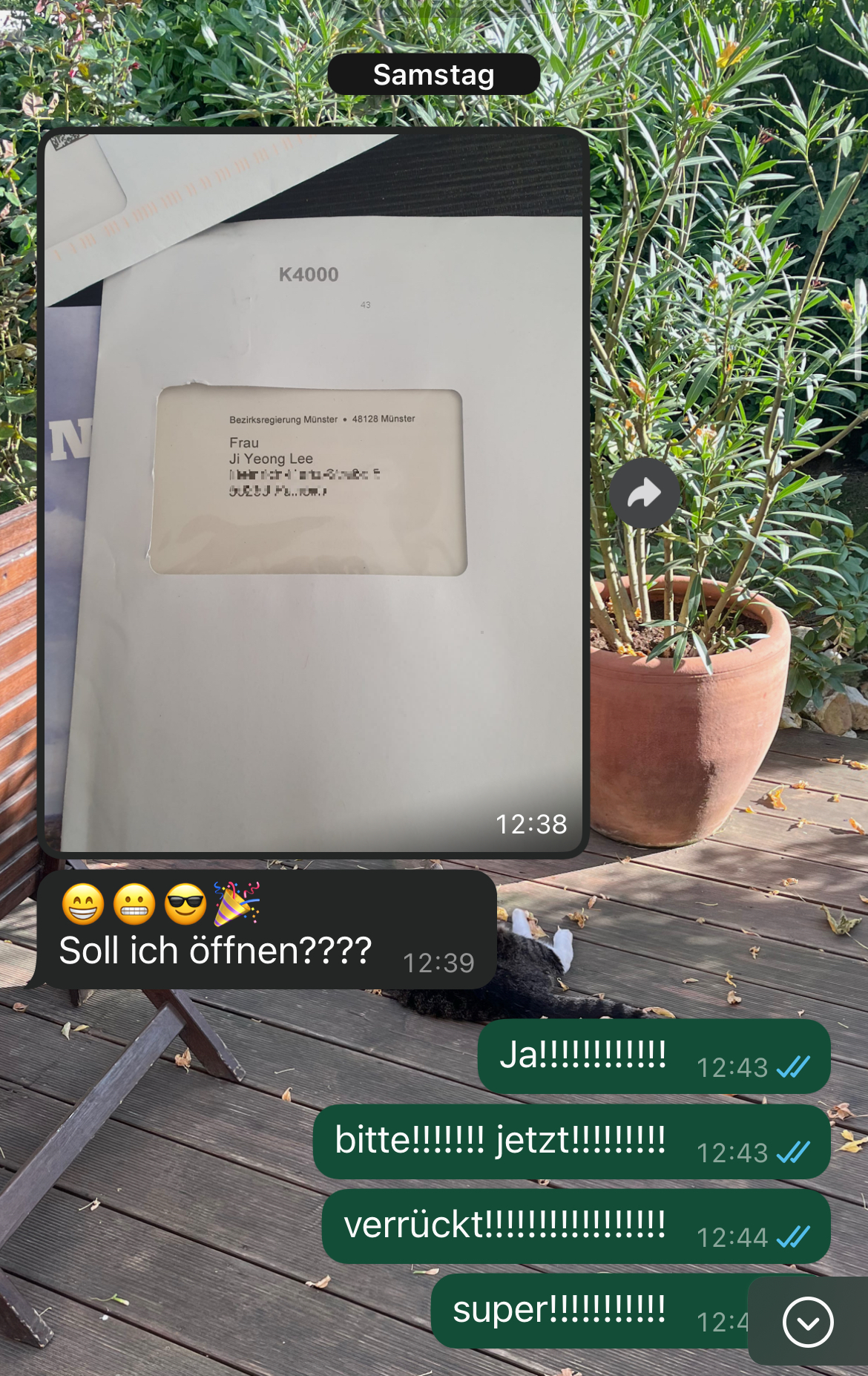 그리고 3월이 되었다. 다행히도, 2월말부터 3월초까지 진행된 쾰른의 카니발 덕분에 나는 조금 더 신나게 3월을 맞이할 수 있었다. '그래. 드디어 3월이다. 11월 12일날 접수가 완료되었다하니, 4개월 뒤인 3월 12일까진 진짜 오겠지. 2월달에 안그래도 내가 답답해서 한번 문의메일을 보냈었잖아, 언제오는지에 대해. 근데 내 담당자가 [4개월내로는 갈 겁니다] 했으니, 조금 더 여유롭게 기다려보자!' 그리고 대망의 3월 12일이 되었고- 우편함은 텅 비어있었다. 젠장.. 이 인간들아ㅠㅠㅠㅠ4개월내로 답장 준다며어어어어어!!!!!!!! 겉으로 최대한 쿨한척을 하며 기다려온 나였으나, 막상 우리의 약속기간이었던 4개월이 지났는데도 소식이 없자 13일부터 나는 초조해지기 시작했다. 편지는 꿈에서나 뜯고 있었으며, 오지 않는 님을 기다리는 허망한 눈빛으로 창 밖을 바라보기 일쑤였다. 그리고 15일 토요일이 되었다.