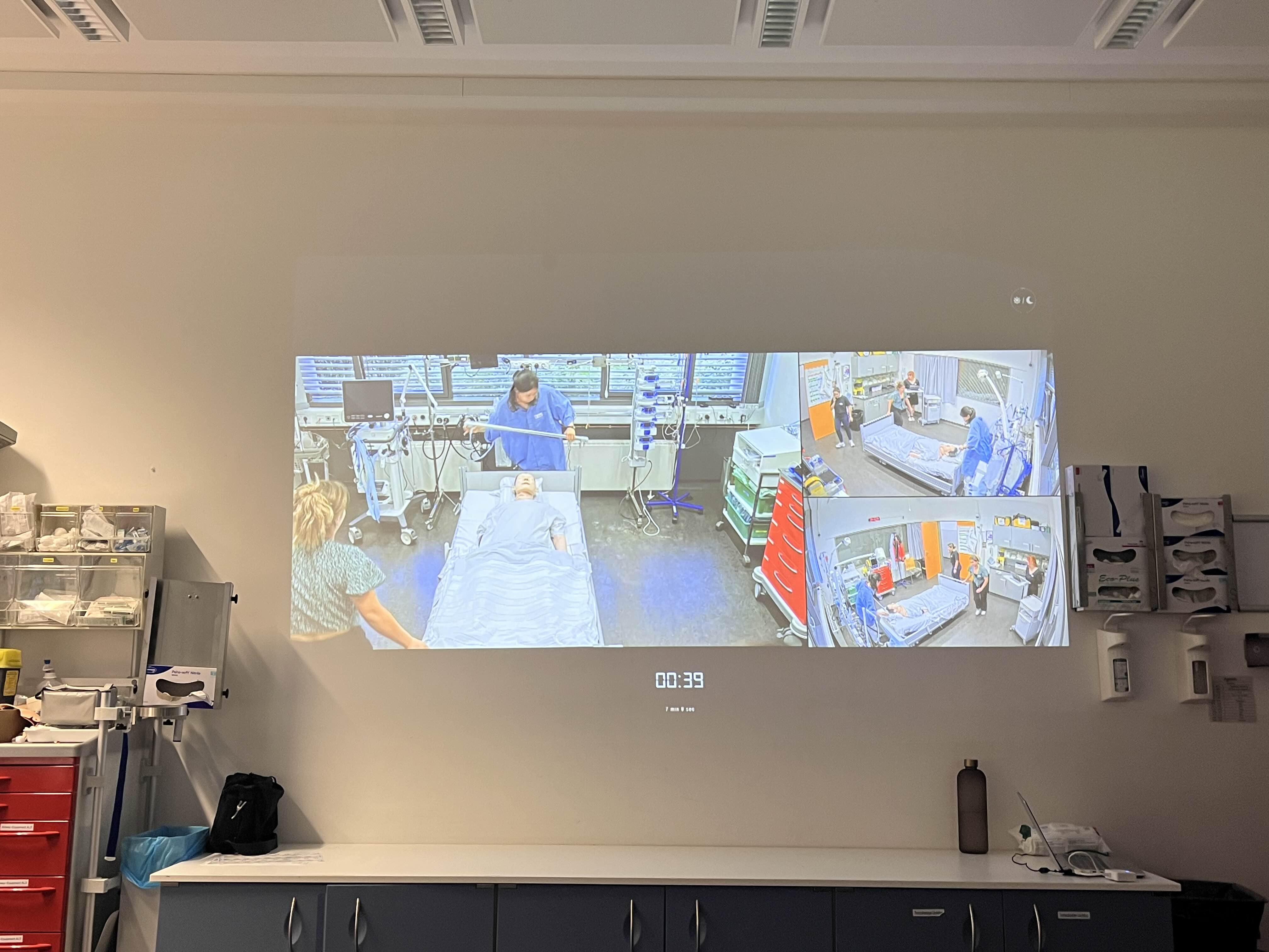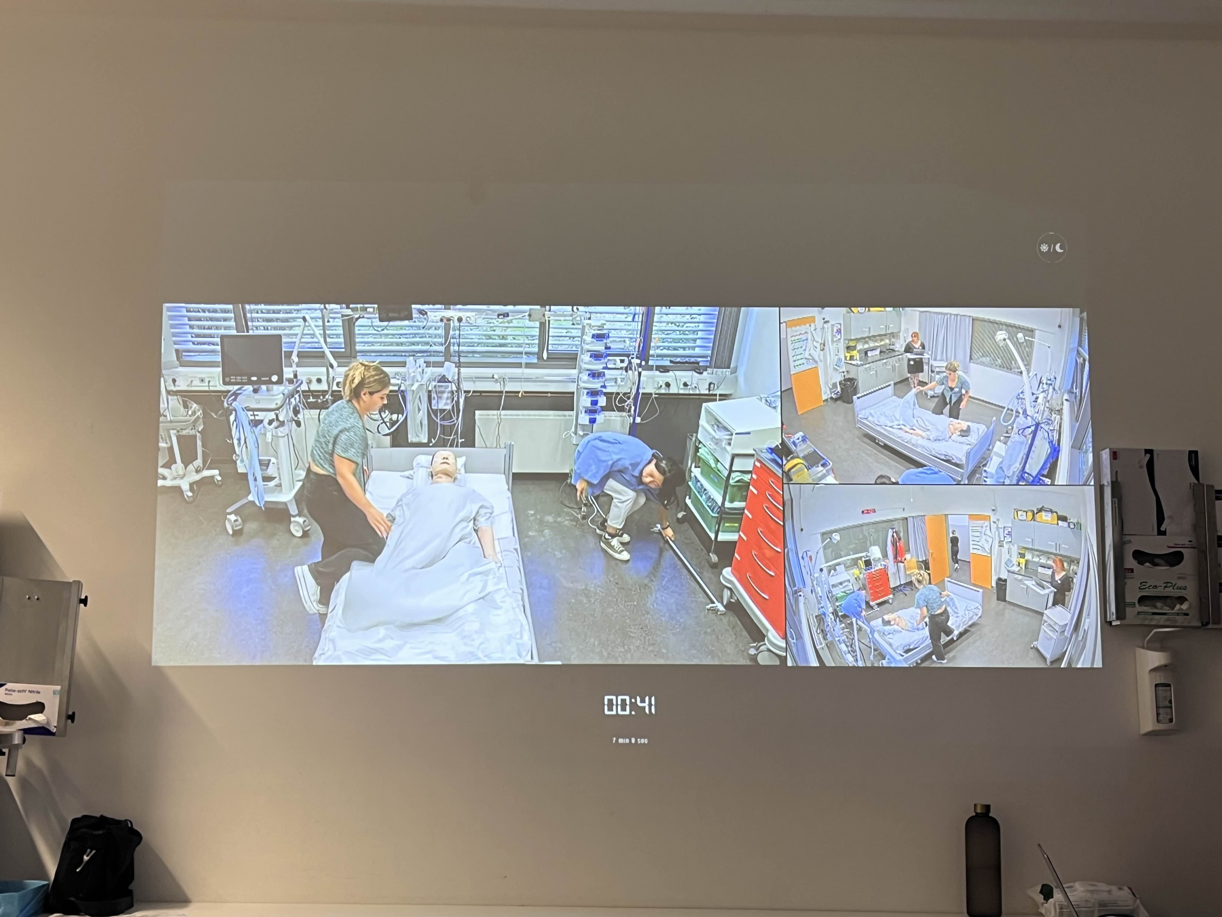 오늘은 교육 마지막날로, 심폐소생술(BLS로!)을 배웠다. 예전에 학생이었던 때에 BLS 과정으로 들었었고 그 뒤엔 딱히 뭐가 더 없었다. 어쨌든 알고있는 내용이었고, 과정도 단순하단걸 모르는게 아니었으나 ‘독일어‘로 듣고 말하고 지시해야된다는게 왕왕 부담이었다. ‘혹시나 하나도 이해 못 하고 나만 읭..? 이러고 있으면 어쩌지...’싶었지만 이미 한국에서 받은 교육이었으니, 다행히도! 강사들이 무슨 말을 하고있는지 이해가 잘 되었고 교육이 끝나갈때쯤엔 ‘적어도 이제 여기서 길 지나다가 쓰러진 사람을 만나면 최소한 처치는 할 수 있겠구나’싶은 안도감+용기가 생겼다. 전반적인 내용은 한국에서 받았던것과 당연히 비슷했으나 그 중 인상깊었던건, 저렇게 CCTV로 촬영을 하며 한 팀이 시뮬레이션을 시작한걸 다른팀이 볼 수 있었으며 해당 팀의 인원들이 돌아오면 다같이 피드백을 주고받는 과정이 새로웠다.