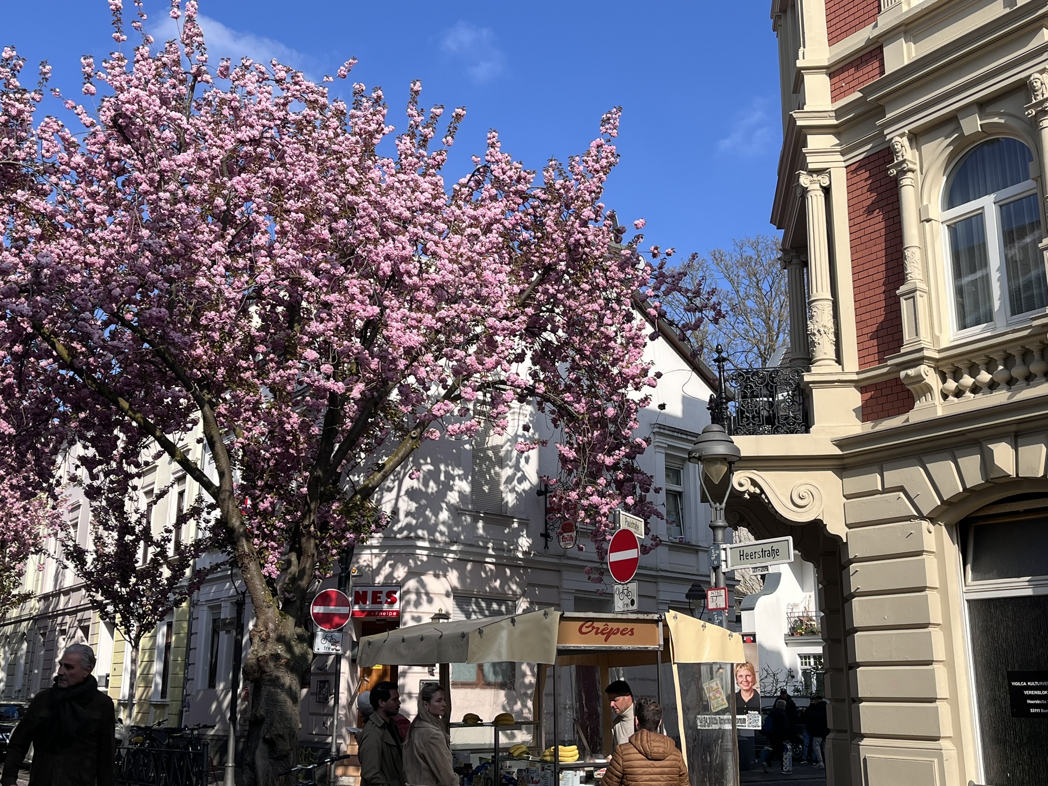독일엔 겹벚꽃이 많다고 들었는데, 직접 보니 정말 팝콘같이 알차게 피어있었다. 내가 다녔던 어학원 근처엔 일반 벚꽃이 많았는데, 여기 본은 정말 겹벚꽃 맛집인듯하다. 정말정말 예뻤다. 종종 바람에 벚꽃잎이 떨어지며 흩날리곤 했는데, 마치 만화의 한 장면 같았다.